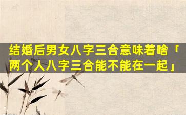 在传统命理学中,男,女 🐕 八字三合被认 🐳 为对于婚姻有着积极的意义主要表现在以下 🐋 方面: