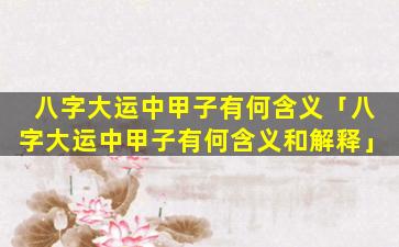 甲子大运是八字大运的一种,指出生时天干为甲、地支为子 🐱 的流年运势。