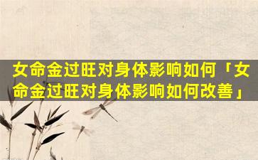 女命金过旺对 🌷 身 🕊 体的影 🐝 响: