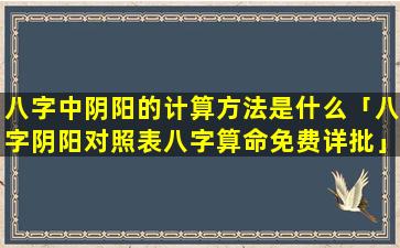 八 🌺 字中阴 🐵 阳的计算方法 🕊