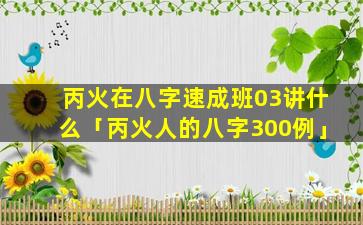 丙火在八字速成班 🐅 03讲解的内容主要包括: