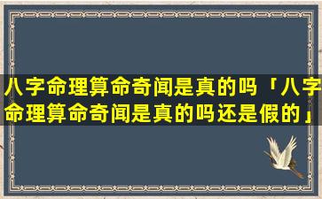 八字命 🌾 理算 🐘 命奇闻的真 🌾 实性是一个有争议的话题。