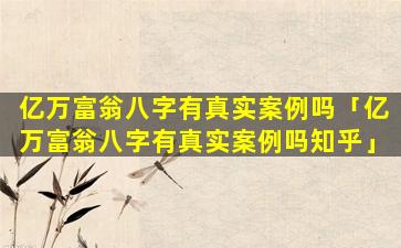 知 🍀 乎上有关于亿万富翁八字的 🦊 真实案例分享,但这些案例的真实性无法得到证实。