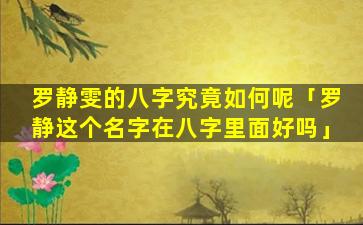 寓意美好吉祥:罗 🦄 静雯寓意着天资聪慧、宁静、安详云淡风轻 🍁 。