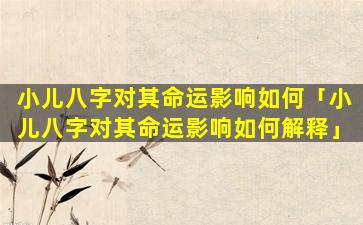 八字 🐠 理论 🌷 与小儿命运 🌴