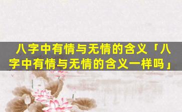 注意:八字中情与无情的判断需要综合分析,不 🦄 ,能仅凭单一的五行关系还要结合大运流年以及 🦟 四柱十神的配合。