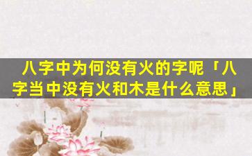 在八字 🐧 命理学中,没有火和木表示命主五行中缺失了火和木两行。