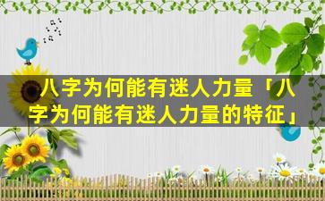 八 🦁 字具有迷 💮 人力量的 🌴 特征如下: