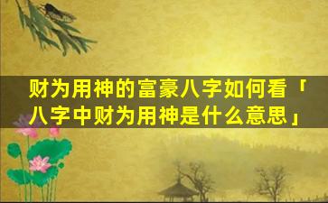 财为用 🍀 神的富豪 💐 八字特征 🌵