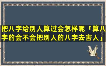 对于“把八字给别人算过会怎 🐼 样”的说法,在不同的文化和信仰中有着不同的解释和看法: