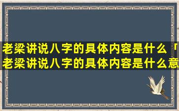老梁 🌺 讲 🐦 说八字的具体 🐠 内容