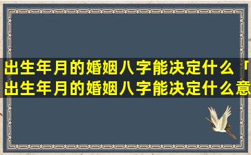 出生年 🐵 月的婚姻八 🕸 字 🐞 可以决定以下方面: