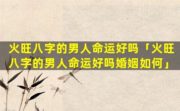 火旺八字男人 🌿 的婚 🐝 姻 🦊