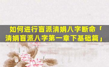 清娟盲派命理是中国古代命理学中的一大门派,以其独特的盲法推命 🐒 理论和精湛的命理技法而闻名。本。视频将为您揭开 🐕 清娟盲派命理精髓的第一章