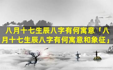 综合寓意:八月十七生辰八字整体寓意着此人 🌹 性格温和仁慈意,志,坚,定果决心思缜密聪慧有理想抱负。他,们,为人。忠,诚,可,靠。做事稳重踏实注重信用在生活中他们富有同情心乐于助人深受他人尊敬和爱戴