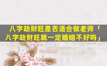 八字劫财旺是否适合做老师需要结合八字的整体格局、用、神 🌴 、年份 🐯 流年等多种因素综合判断,不能一概而论。