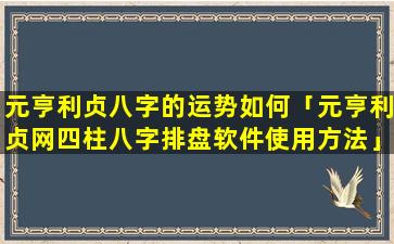 元 🦢 亨利贞网四柱八字排盘软件使用 💮 方法