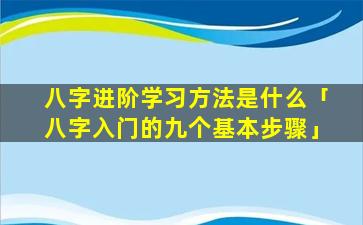 八字入 🦋 门的九个基本步 🌹 骤