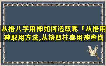 从格八字 🐺 用神选取原则