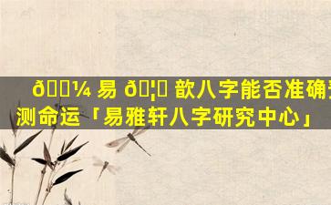 易雅轩八字研究中心是一个 🐎 专业的八字命理研究机构,致力于通过八字命理预测人生运势、提供人生指导。