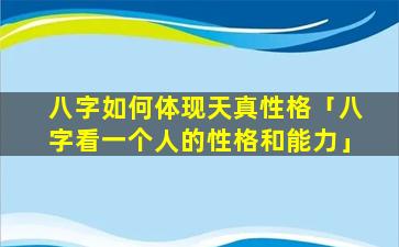 八字中体现天真性格 🐈 的特征主要体 🪴 现在以下几个 🍀 方面:
