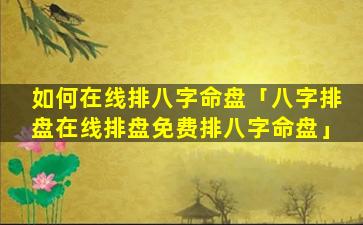 要在线免 🐘 费排八字 🐟 命盘,请 🐬 按照以下步骤进行: