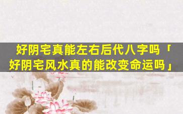 传统风水学认为,好,阴,宅风水可以帮助后代子孙获得好运或改 🐒 善命运但这种说法缺乏科学依据无法用实证的方法进行验证。