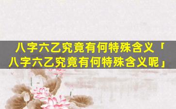 在八字命 🕸 理学中八字,“六乙”具有以 🌲 下特 🐱 殊含义: