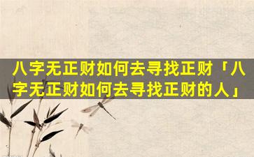 尽管八字无正财,但可以通 ☘ 过以下 🐼 方法寻找和吸引正财: