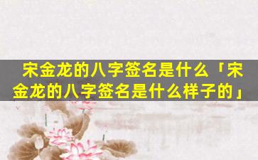 宋金龙的 🪴 八字签名是一种风水手印,用于增强运势和改善生活。