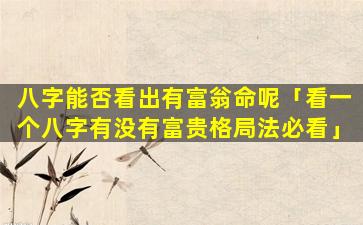 八字中是否能看出有富翁命,无,论是,对于女孩还是男孩都是一个复杂且多方面的问题无法简单地给出确切的答案八字。运,势讲究综合分析需要结合八字中的十神、五、行,生。克 💮 大运流年等多方面因素进行 🌻 综合判断综合考虑后才能得出较为准确的结论