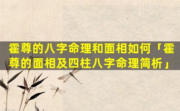 综合分析:霍尊面相和命理特 🌲 征综合表明,他是一个才华横溢、事业有成的人。但,同、时。也,存。在性格固执情感 🌵 不顺的弱点如果能够克服 🐯 这些弱点他的事业和情感运势将会更加顺利