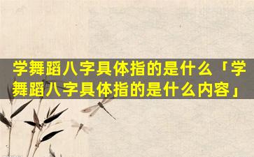 八字中的“学 🕸 舞蹈 🦆 ”具体指的是: