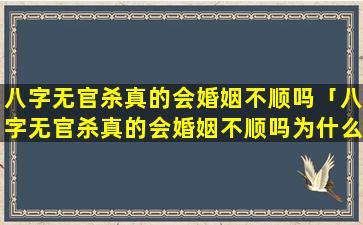 八字无官杀 🦋 并非一定 🍀 代表婚姻不 🐕 顺,需要综合八字命局其他因素分析。