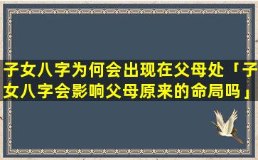 八字理论 🦊 中,子女八字并 🐱 不会影响父母原有 🐠 命局。