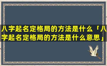 八字起名定格局的 ☘ 方法,是,指,利,用一个人的出生年月日时八字推算出 🕸 其命理格局并根据推算的结果为其取一个与命理相契合的名字。
