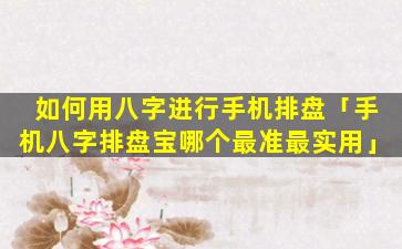 最准最实 🌸 用的手机八字 🐎 排盘宝 🐶