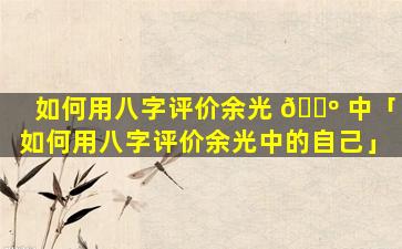 总体来看,余,光,中,的,八,字格局较好食神和官星旺 💐 盛印星 🍀 有生扶五 ☘ 行流通顺畅预示着他一生事业有成文学创作卓有成就。
