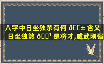 1. 日坐独杀的影 🐈 响力会 🕊 受到八字中其他因素的制 🐯 约,如身强身弱、食伤星旺衰等。