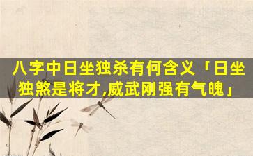 这句话的意思是,生辰八字中“日柱”遇 🐒 “到独煞”(即七杀),表,示,此人有将才之能威武刚强有魄力。