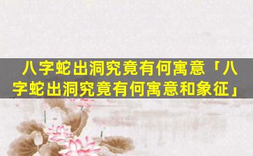 八字蛇出洞的寓意 🐛 和象 🐯 征