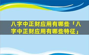 正财在八字中的应 🪴 用
