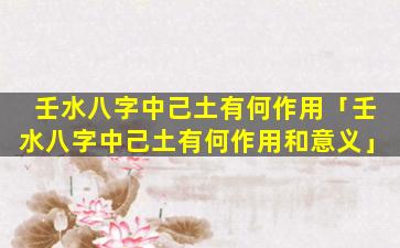 壬水 🌷 八字中己土的作 🐈 用和意义