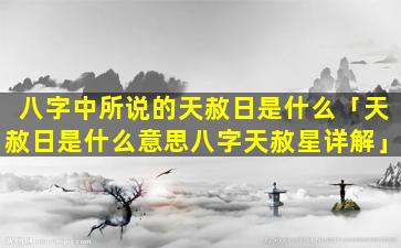 在八字中,天,赦,日是指一种特殊的日子代表上天宽恕罪孽赦免错误在。这 🌳 ,一,天。人们可以祈求消灾 🌷 解难祈福纳祥