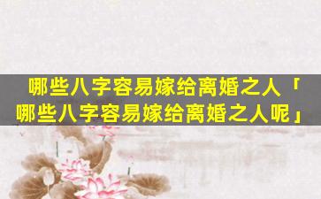 八字容 🌷 易嫁 🐎 给离婚之人的特征: