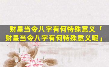 财星 🌳 当令 🐵 八 🦊 字具有以下特殊意义: