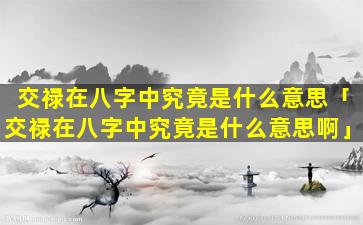 交禄并不是一种吉利或不 🐺 吉利的征兆,具体影响需 🐈 要结合八字的其他因素综合分析。