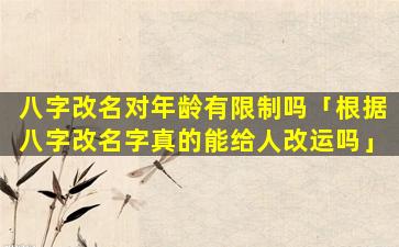 一般来说,八字改名对 🐒 年 🐵 龄没有限制八字。是一,个。人。出,生。的时间点它代表了一个人的先天运 🐛 势改名是通过改变一个人的名字来调整其后天的运势因此八字改名可以适用于任何年龄段的人