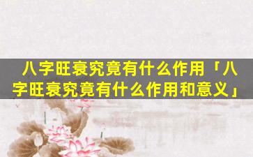 八字旺衰是中国 🌷 传统命理学中的重 🐘 要概念,它,评判个人的先天命格强弱对预测人生运势 🌳 具有重要指导意义。