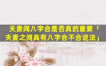 夫妻间八 🌸 字合的重要性,在中国传统文化中一直备受争论。